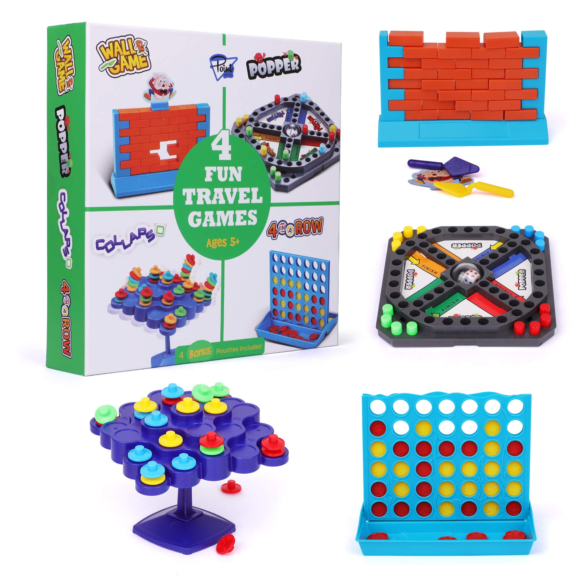 Point Games 4 Fun Travel Games Board Game Assortment In One Box Improves Eye Hand Coordination And Stimulates Strategy And Critical Thinking Easy Storage And Travel Friendly Tabletop Set Ages 7 Walmart Com
